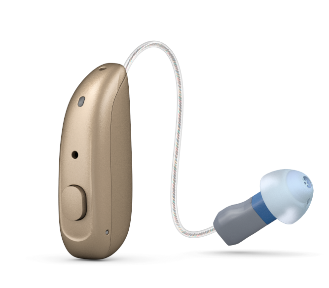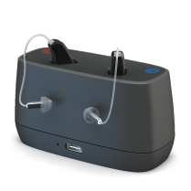 Audífono ideal para pérdidas auditivas de leves a moderadas. Es una combinación de audífono detrás de la oreja (BTE) y audífono en el conducto auditivo (ITE), RECARGABLE